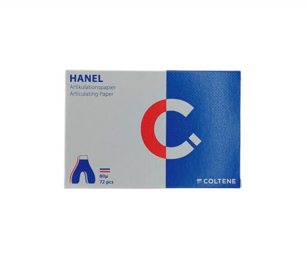 Kalka artykulacyjna Hanel o grubości 80 mikronów w kształcie podkowy to praktyczny i precyzyjny materiał stomatologiczny do oznaczania kontaktów zwarciowych na całym łuku zębowym. Podkowiasty format umożliwia szybkie i wygodne umieszczenie kalki w jamie ustnej pacjenta, co usprawnia pracę podczas badania i korekty okluzji.