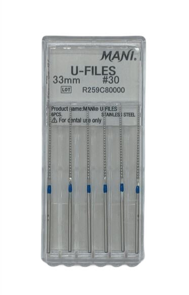 U-File Mani to specjalistyczne pilniki endodontyczne przeznaczone do stosowania z urządzeniami ultradźwiękowymi do zabiegów irygacji i dezynfekcji kanału.
