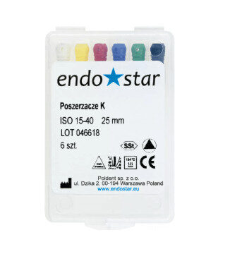 Endostar Poszerzacze K to instrumenty endodontyczne przeznaczone do pracy metodą poszerzania (ruchy obrotowe). Można nimi wykonywać ruchy obrotowe w większym zakresie niż pilnikami K.
