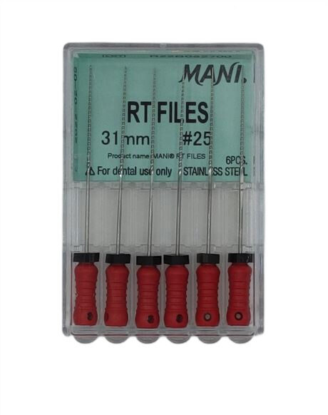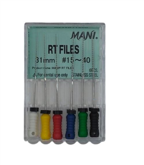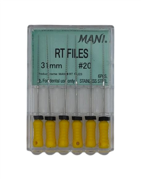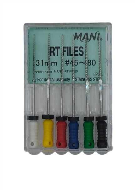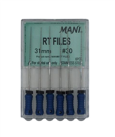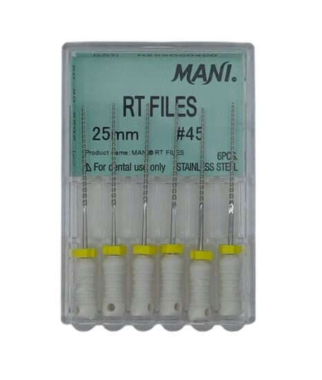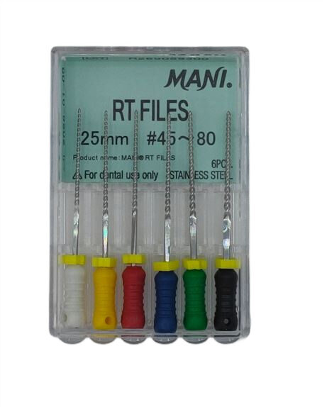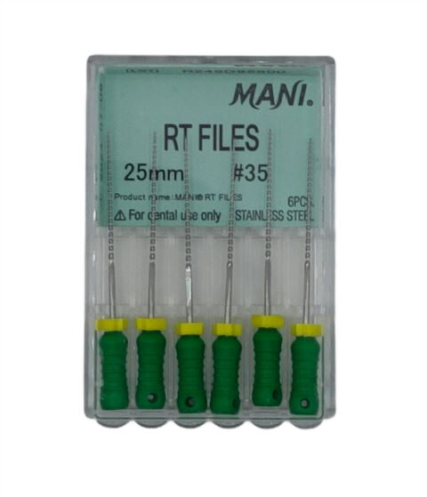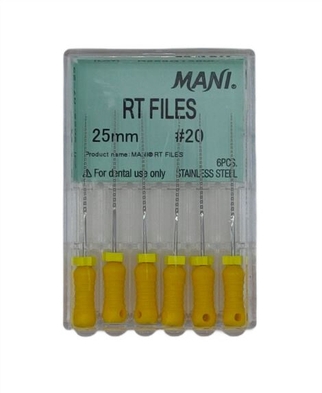 RT Files Mani to ręczne pilniki endodontyczne zaprojektowane z myślą o bezpiecznym i efektywnym opracowywaniu kanałów korzeniowych, nawet tych o skomplikowanej anatomii. Łączą wysoką precyzję cięcia z wyjątkową elastycznością.