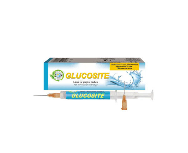 Wyrób Glucosite przeznaczony jest do stosowania podczas zabiegów stomatologicznych, prowadzonych przez lekarza, do przepłukiwania kieszonek dziąsłowych i innych, trudno dostępnych obszarów błony śluzowej jamy ustnej w celu ich przemywania i oczyszczania.