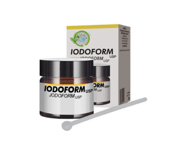 Jodoform to wysokiej jakości, drobnokrystaliczny proszek przeznaczony do profesjonalnego stosowania w endodoncji. Dzięki właściwościom antyseptycznym i osuszającym wspomaga leczenie kanałowe, szczególnie w przypadkach zakażenia lub wysięku z kanału korzeniowego.