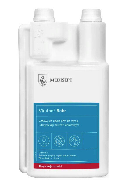 Viruton® Bohr to preparat przeznaczony do jednoczesnego mycia i dezynfekcji precyzyjnych narzędzi obrotowych oraz pozostałych inwazyjnych instrumentów medycznych. Zalecany jest do dezynfekcji: wierteł, frezów kostnych ze stali, twardych metali, diamentów, narzędzi ściernych i polerujących takich jak: gumki silikonowe, płytki ceramiczne oraz narzędzi do leczenia kanałowego. Zawiera inhibitor korozji, dzięki czemu idealnie chroni instrumenty ze stali i stopów metali. Posiada bardzo dobre właściwości myjące, również w przypadku zaschniętych pozostałości organicznych. Może być stosowany poprzez zanurzenie w wannie do dezynfekcji lub w myjce ultradźwiękowej.