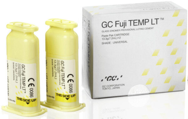 GC Fuji TEMP LT to glasjonomerowy cement tymczasowy w wygodnej formule pasta-pasta, zaprojektowany z myślą o długoterminowym cementowaniu tymczasowym. Dzięki zrównoważonej formule zapewnia stabilną retencję, jednocześnie umożliwiając bezpieczne usunięcie tymczasowych uzupełnień, gdy zajdzie taka potrzeba.