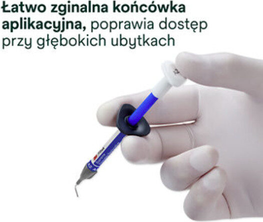 - Zginająca się końcówka aplikacyjna odporna na załamanie ułatwia dostęp w przypadku głębokich odbudów