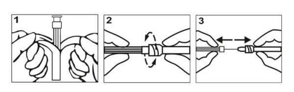 2. Za pomocą gwintu typu luer-lock zamontować igłę na strzykawkę wypełnioną wybranym płynem.