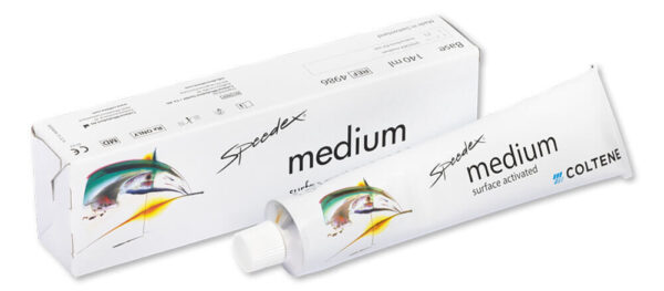 Speedex Medium to średniolepki materiał wyciskowy na bazie silikonu kondensacyjnego, przeznaczony do wykonywania precyzyjnych wycisków stomatologicznych. Stanowi uniwersalne rozwiązanie, które może być stosowane zarówno samodzielnie, jak i w technice dwuwarstwowej w połączeniu z materiałami o innej lepkości (np. Light Body lub Putty).
